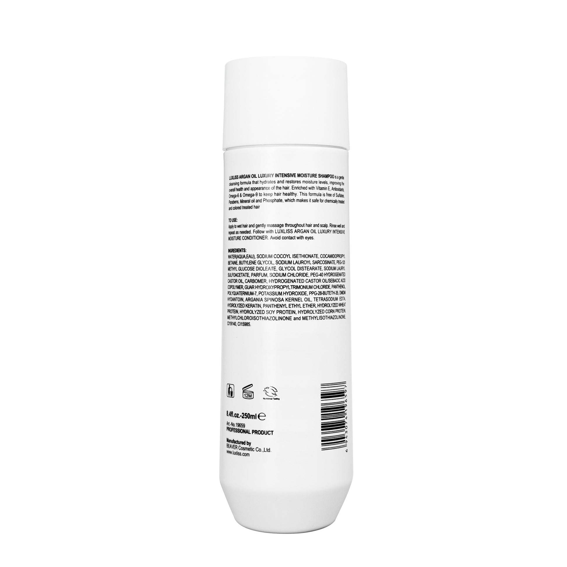 Apply to wet hair and gently massage throughout hair and scalp. Rinse well and repeat as needed. Follow with LUXLISS ARGAN OIL LUXURY INTENSIVE MOISTURE CONDITIONER. Avoid contact with eyes.